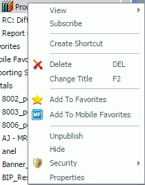 Note: The Subscribe option is available only if the Enable Library Watch List check box within the ReportCaster Console Configuration tab is selected. For more information, see Report Library Settings.
