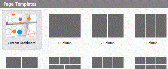 Page templates provide a quick way of creating page layouts. When you create a new collaborative portal or portal page, the Add Page dialog box opens and provides layout presets that you can choose from before adding any content. If you have custom templates, they are also shown in this dialog box.