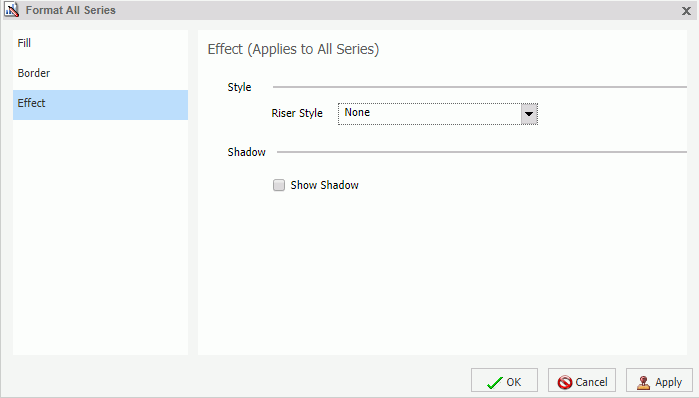 Use the Effect tab to specify styling and shadowing options for HTML5 charts.