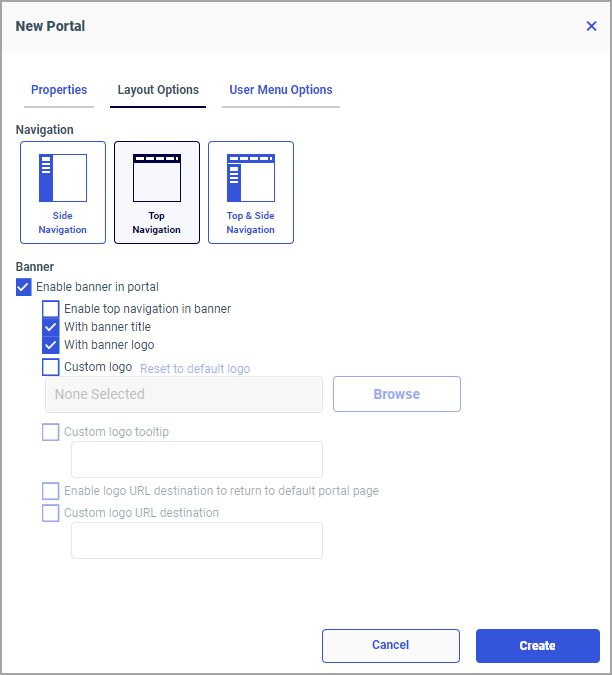 Note: It is recommended to disable the banner if you plan to embed your portal into a third-party application.