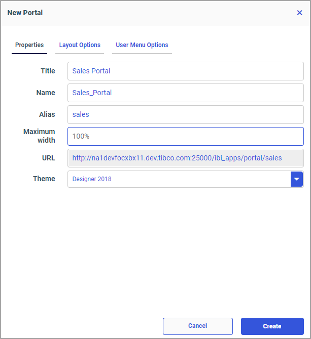 The New Portal dialog box opens. There are three tabs in the New Portal dialog box: