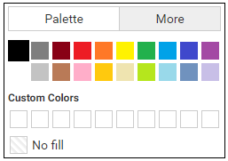 The following image shows an example of color options that display on the Format tab (with the palette exposed), which you will also see in other areas where color formatting is supported: