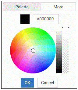 In WebFOCUS Designer, the color picker supports a colorspace and a palette-based approach, as shown in the following image.