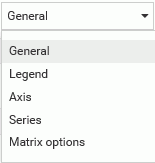 General options display, by default, but you can use the Quick Access menu to select a different aspect of your chart, for example, Legend, Axis, Series, or Matrix options, as shown in the following image.