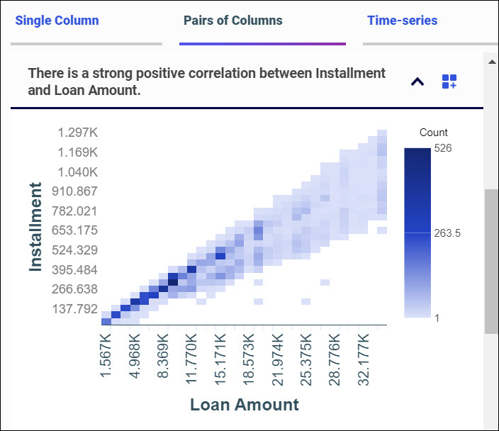 The total number of insights generated, with a time stamp, is displayed. If your data is dynamic, you can click the refresh icon to gain updated insights.