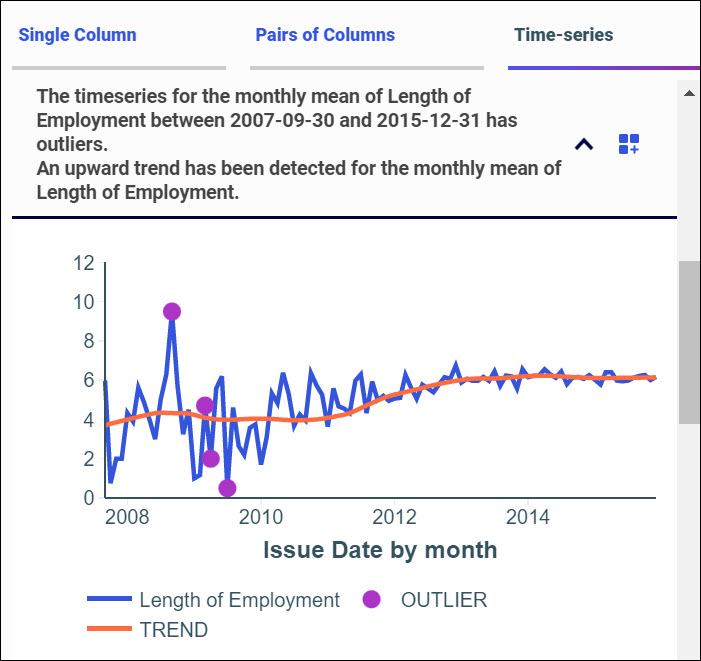 A line chart identifying trend and outliers is shown in the following image.