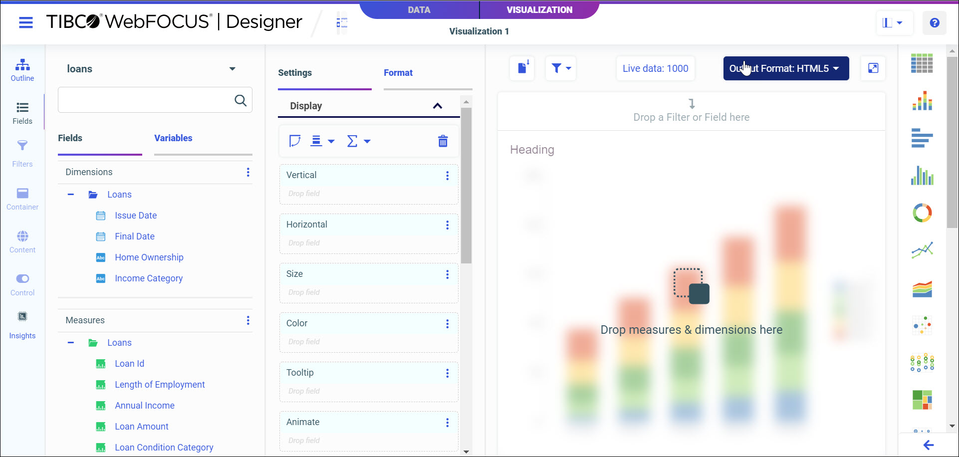 The WebFOCUS Designer Visualization tab opens, as shown in the following image.
