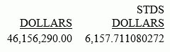 DEFINE FILE ibisamp/ggsales DOLLARS/D12.2 = DOLLARS; END TABLE FILE ibisamp/ggsales SUM DOLLARS STDDEV(DOLLARS,S) ON TABLE SET PAGE NOLEAD ON TABLE SET STYLE * GRID=OFF,$ ENDSTYLE END