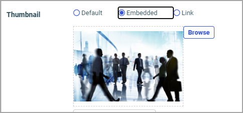 In the Open dialog box, select an image file and click Open. The custom image displays in the preview section of the Thumbnail property, as shown in the following image.